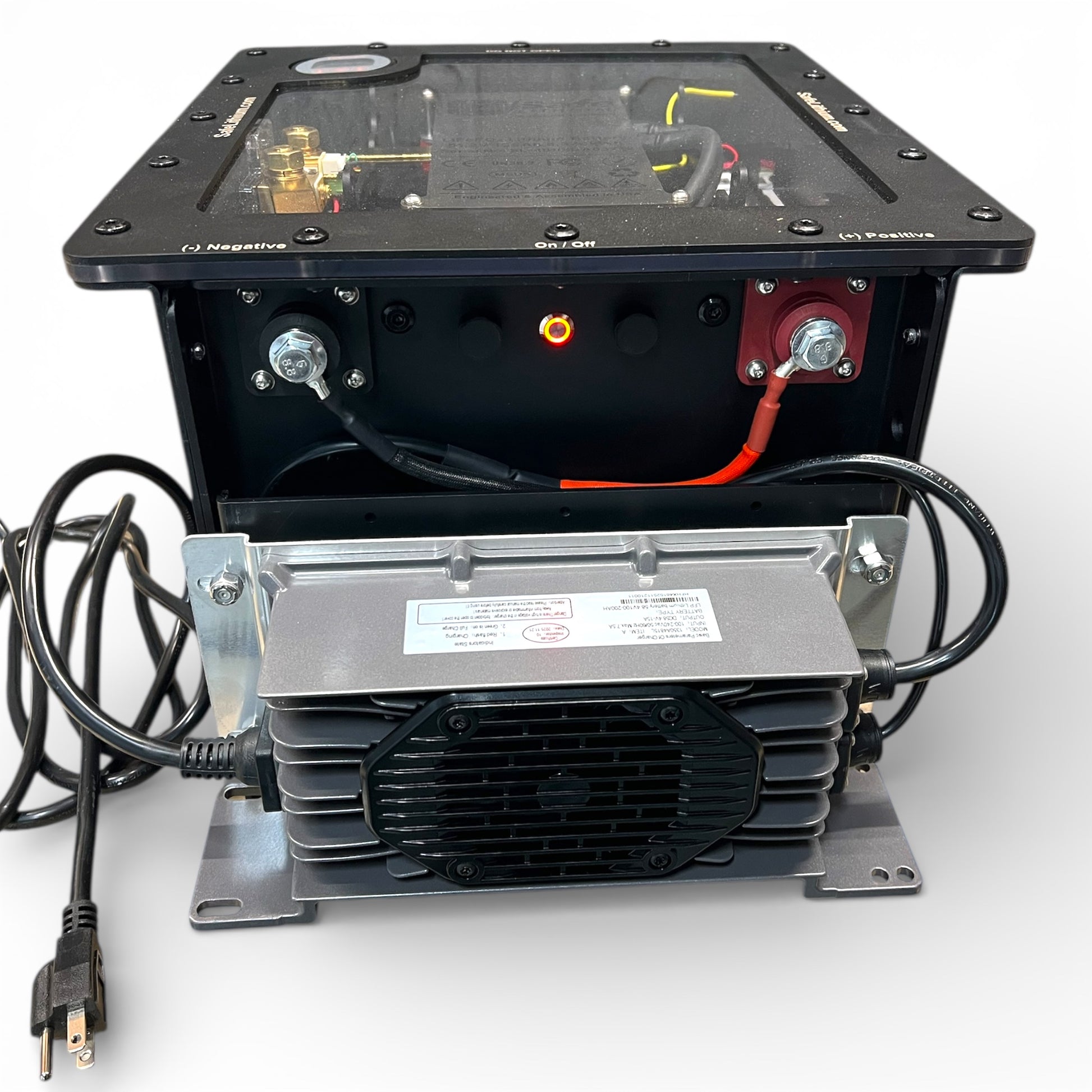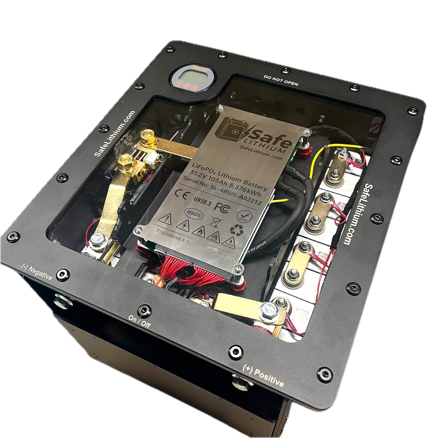 48V (51.2V nominal) universal-fit golf cart battery. 105 amp hours. 10 year warranty. Fully engineered & assembled in the USA.